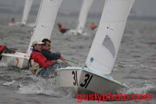 最後まで優勝を争ったのは、同じ福岡大学出身の吉岡・古川ペア(七洋会)。吉岡選手は、2001年ウルグアイワールドでは、今回優勝の上田選手とペアを組んで、その年 日本選手最高の成績を納めている。それ以降、全日本選手権では結果に恵まれなかったが、その鬱憤を晴らすかの如く快走した。強風域でのレースにまだ課題があると思われるが、加原ペアと合わせて、日本スナイプ界の世代交代を進めてくれそうだ。